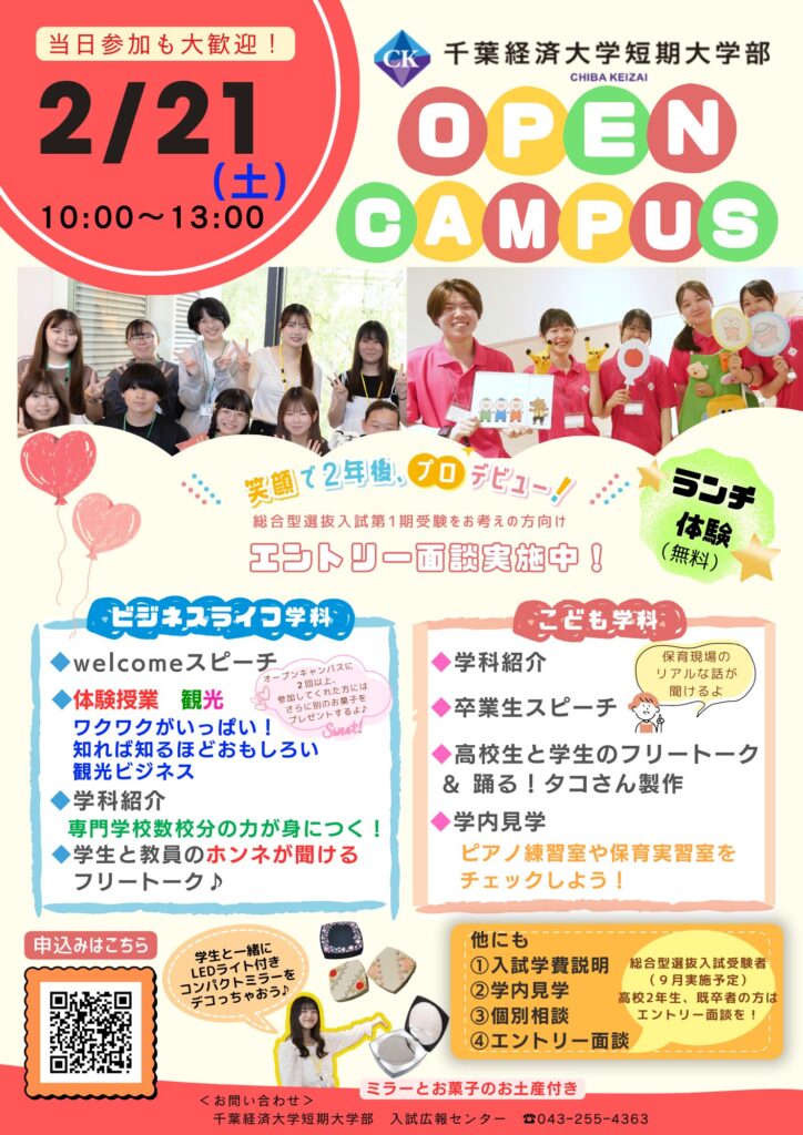 進路を考える時って、いろいろと悩みますよね。そんな時こそ、千葉経済短大のオープンキャンパスに来てみませんか?