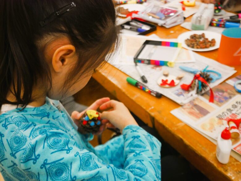 12月13日(土)午後2時15分~3時45分、第4回こども造形教室「フェルトや木のみでクリスマスのかざりをつくろう」を開催しました。