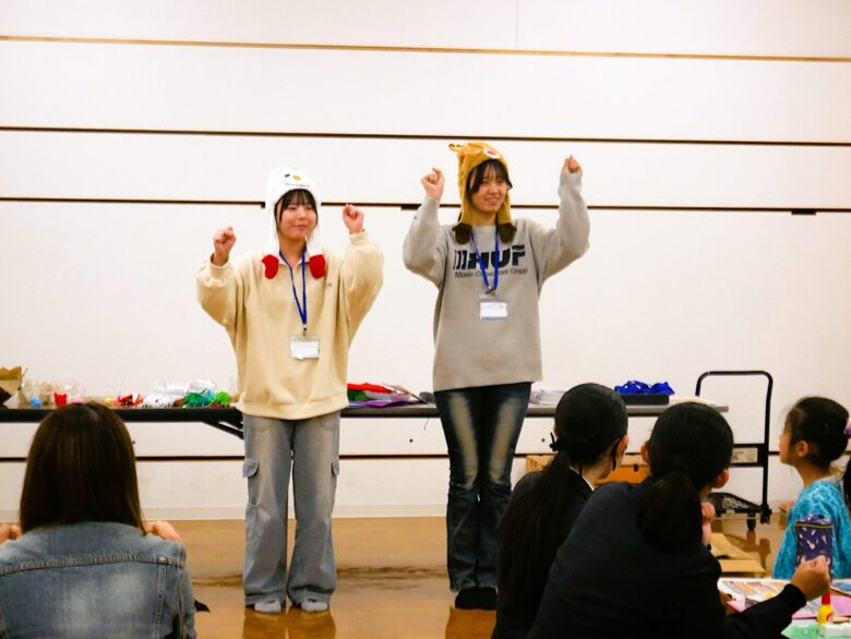 学生スタッフの手遊びで楽しく造形教室が始まりました。