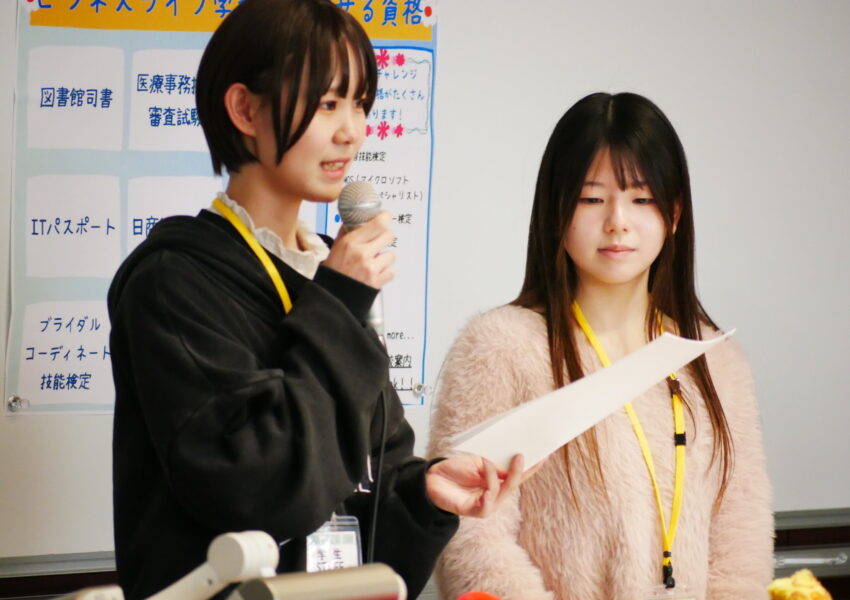 さらに、社会人基礎力の授業では作品づくりに取り組んだり、ファッション系の授業では実践的な知識に触れたりと、学びがそのまま体験につながっていると話していました。学生たちの「楽しい!」という率直な言葉から、自由で実践的な学びの魅力が感じられる時間となりました。